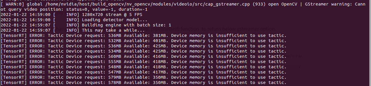 [ WARN:0] global /home/nvidia/host/build_opencv/nv_opencv/modules/videoio/src/cap_gstreamer.cpp (480) isPipelinePlaying OpenCV | GStreamer warning: GStreamer: pipeline have not been created