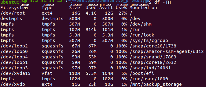 sudo mount /dev/xvdb /mnt/backup_storage/