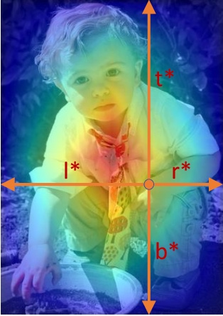이 논문은 anchor 또는 center point위치 로 부터 bbox의 각 변까지의 거리를 regression으로 직접 추론 하는 방식 대신 기대값을 구하기 위한 distribution을 추론 하는 방식으로 문제를 변경했다. 기존 bbox 추론 네트워크 들은 대부분 object 중심에 해당하는 anchor 에서 bbox의 각 변까지의 거리 (l,t,r,b)(아래 그림 참조) 에 해당 하는 4가지 값 scalar를 직접 추론 하는 방식을 채택했다. 이 방식을 굳이 수식으로 나타내면 특정 값에서만 확률 이 1인 Dirac delta function으로 나타낼 수 있기 때문에 이 논문에서는 기존 방식들은 distribution을 dirac delta로 가정 하고 문제를 풀었다고 말한다.