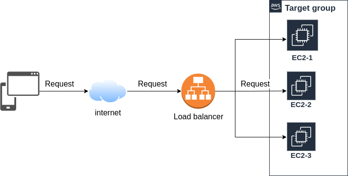 application load balancer는 이런 상황에서 해법을 제공한다. 동일한 서비스를 제공하는 여러 물리 서버를 target group으로 묶고 이 target group으로 가는 모든 요청을 application load balancer가 받아서 target group 에 정해진 정책에 따라 업무를 배분한다. 사용자 입장에서는 서비스를 제공하는 각 서버의 IP 를 몰라도 되고 application load balancer의 IP 나 domain만 알면된다. 또한 load balancer 가 서버에 업무를 분배하므로 어떤 서버가 덜 바쁜지 모니텅링 할필요도 없다.