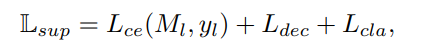 $L_{w}$가 weak label data를 이용한 weakly supervised loss 이고 $g^{k}_{a}$는 auxiliary decoder, $z_{i}$는 encoder output, $y_{p}$는 class activation map 기반의 pseudo gt 이다.