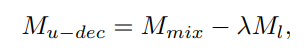 이러한 이유로 이 논문에서는 mixed image를 이용해 생성한 pseudo mask 에서 labeled image 에 해당 하는 부분와 unlabeled image 에 해당 하는 부분을 분리 하는 방법(decoupling method)을 생각해 냈다. 방법 자체는 아주 단순하고 직관적이다. mixed image를 네트워크에 통과시켜 얻은 prediciton 에서 labeled image를 네트워크에 통과시켜 얻은 prediction 을 빼는 것이다.
